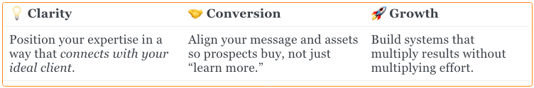 Yet most experts hit revenue plateaus because they try to scale dozens of tactics instead of scaling one proven strategy.